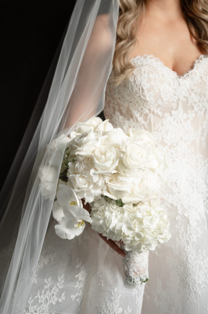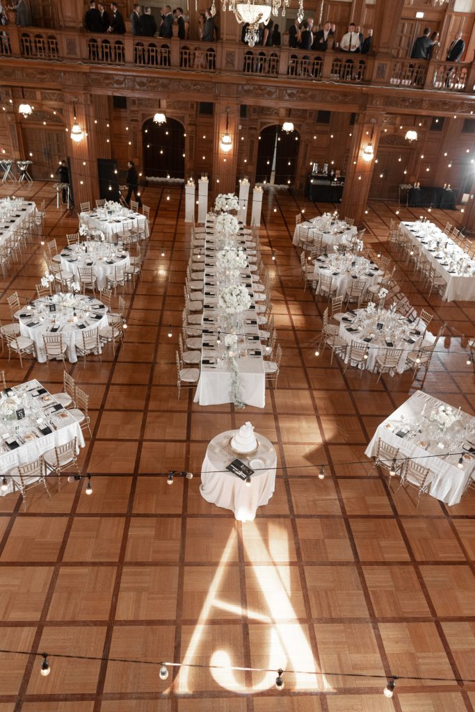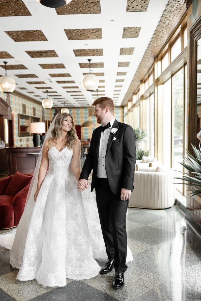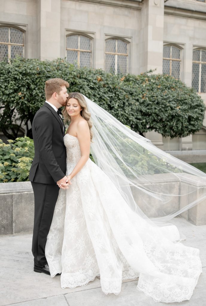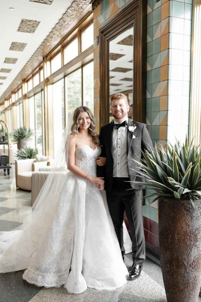Allie and Jake’s cathedral wedding in Indianapolis was the definition of timeless elegance. They shared one of their first kisses as husband and wife on the grand cathedral steps — the kind of cinematic moment you wish you could bottle up and replay forever. Inside, the ballroom glowed with hundreds of candles, soft white florals, and golden touches that made everything feel warm and timeless.