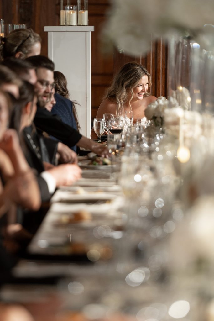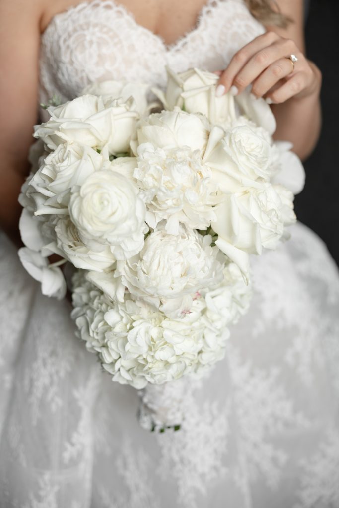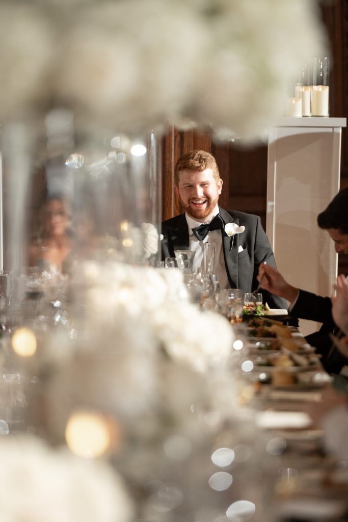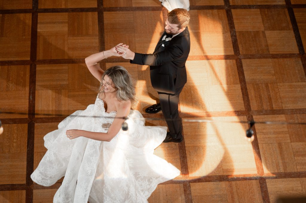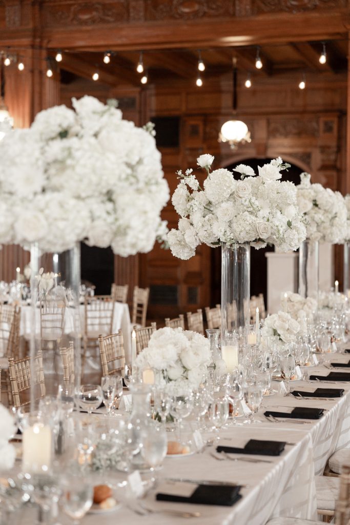 Allie and Jake’s cathedral wedding in Indianapolis was the definition of timeless elegance. They shared one of their first kisses as husband and wife on the grand cathedral steps — the kind of cinematic moment you wish you could bottle up and replay forever. Inside, the ballroom glowed with hundreds of candles, soft white florals, and golden touches that made everything feel warm and timeless.