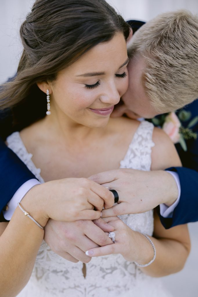 That energy started early in the morning during the quiet moments of getting ready. As Cody puts it, “From a photography standpoint, the bridal suite at The Sixpence always delivers—those portraits and detail moments are some of my favorites to capture.” You can see that in the shots of Holly and her stunning pear-shaped engagement ring, capturing moments that feel like they tell a story.