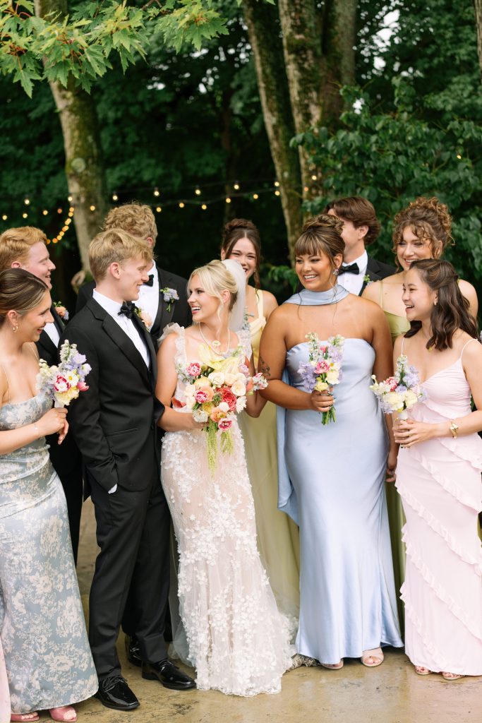 Belle and Griffin’s wedding at Mustard Seed Gardens felt like stepping into the prettiest summer garden party. The whole day was filled with soft pastels, romantic prints, and flowers that looked freshly gathered. The bridesmaids carried parasols that added such a whimsical, storybook touch.
