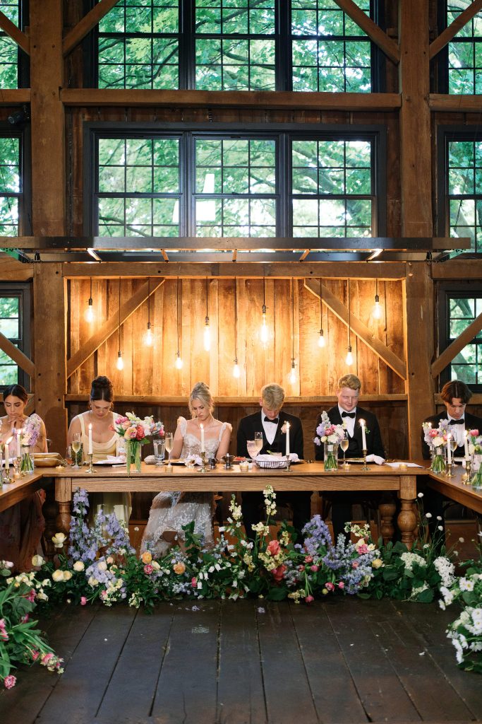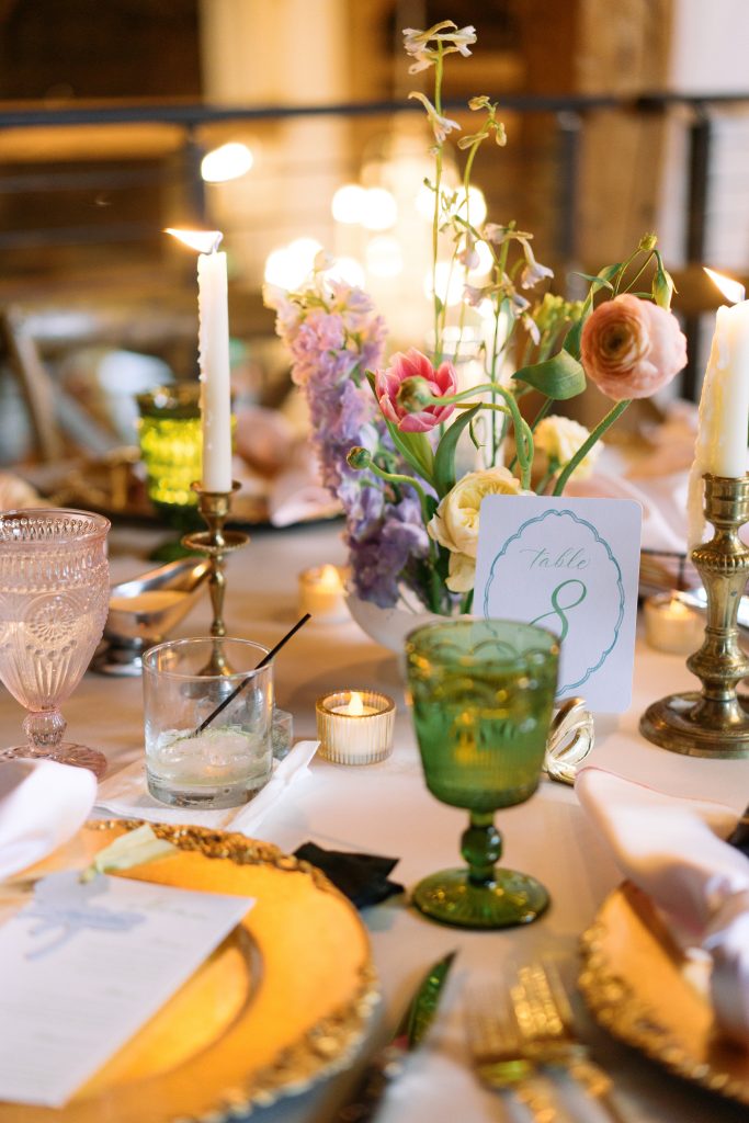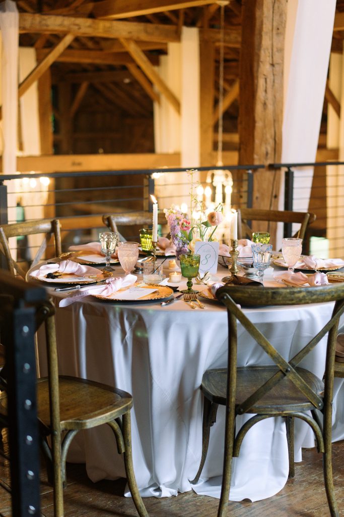 Inside the barn, guests were welcomed with glowing candlelight, pops of color, and personal touches at every turn. From cocktails named after their dogs to a stunning tiered cake, each detail felt personal and thoughtful.