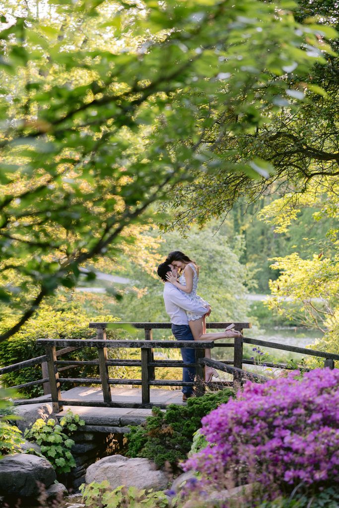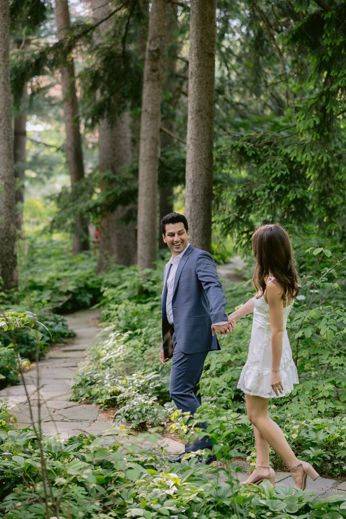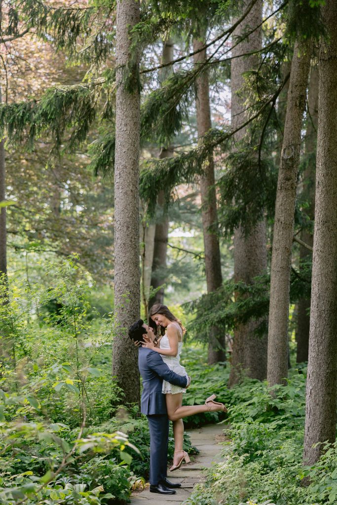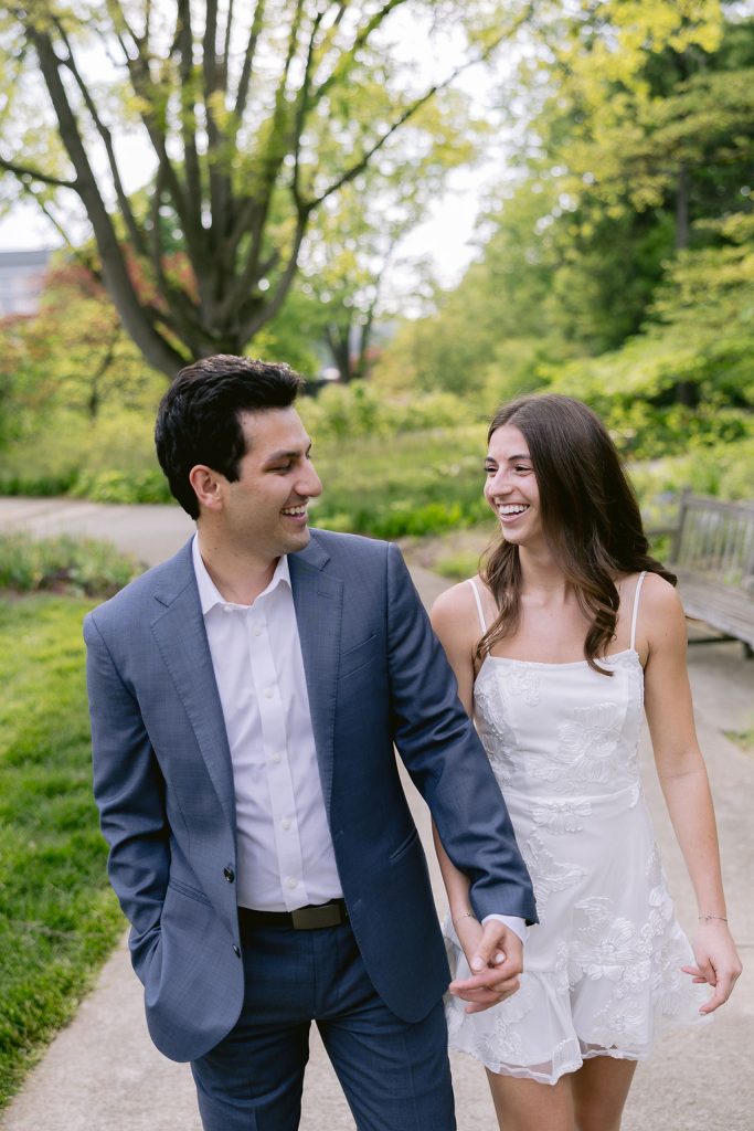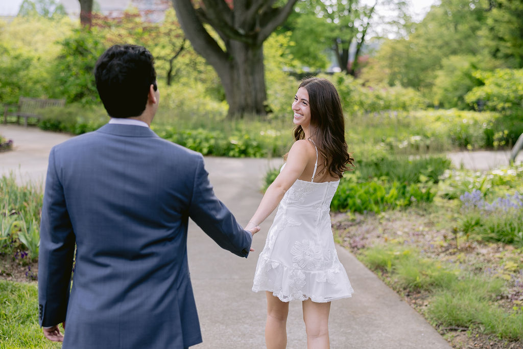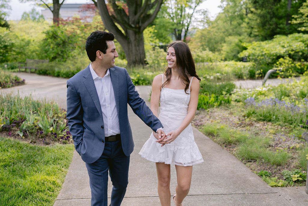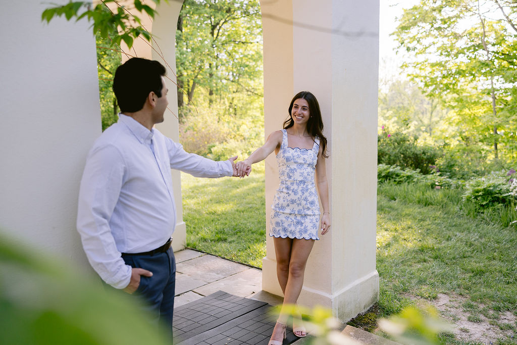 Photographed by Rogue Image Photo in the spring, the setting adds a soft cinematic layer without overpowering the couple. Photographer Cody shared that his approach was to let the environment enhance Carly and Ethan’s connection rather than compete with it. With lush greenery, refined architecture, and pockets of quiet space, the location offered variety while still keeping the focus where it belonged.