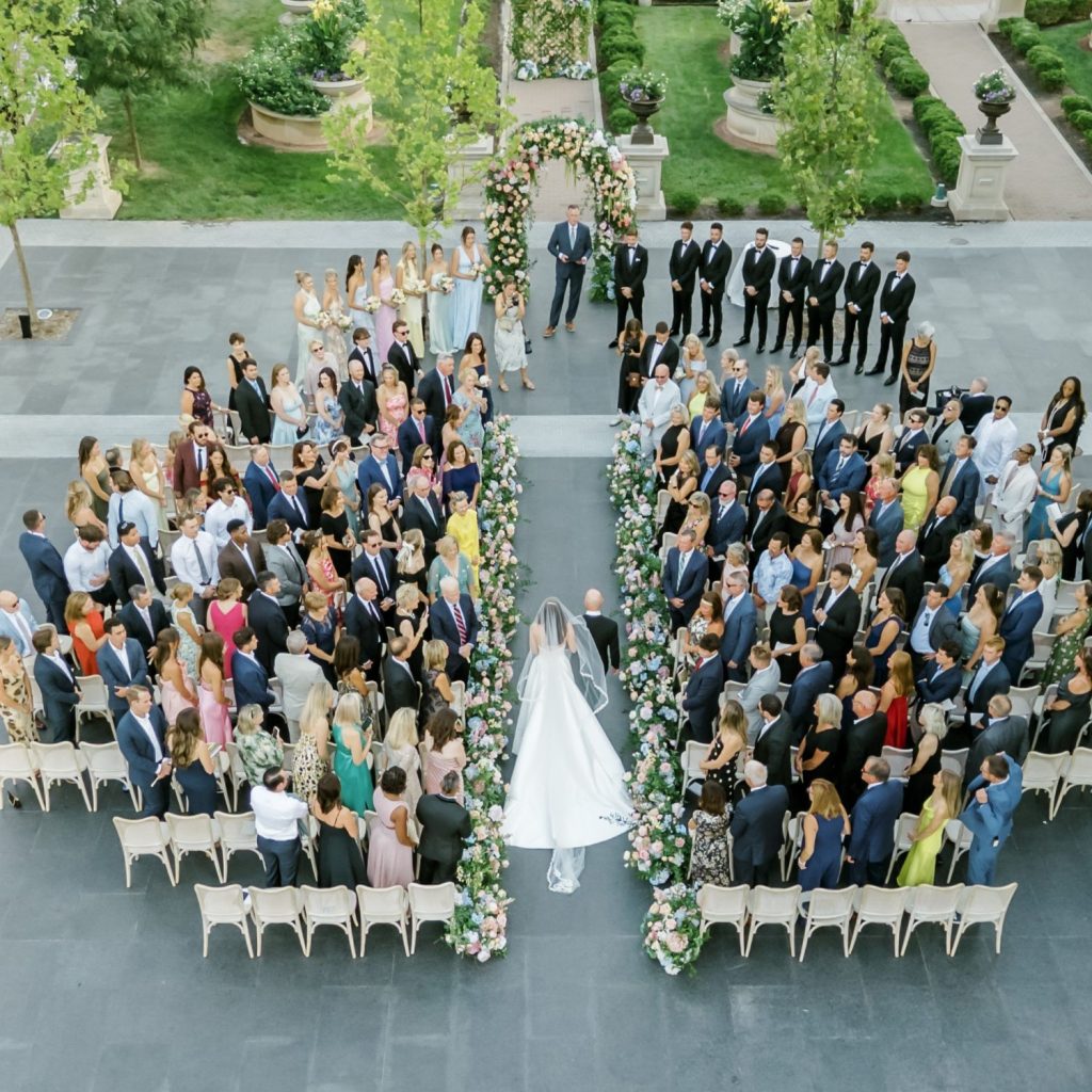 One of Mary and Max’s favorite moments came just after the ceremony. Newly married, they stepped up to their suite and looked down from the balcony at all of their family and friends gathered below to celebrate them. It was a quiet, surreal pause—intimate, emotional, and unforgettable.