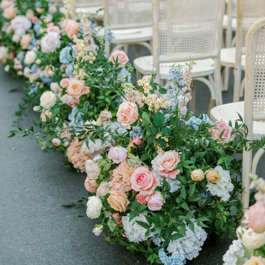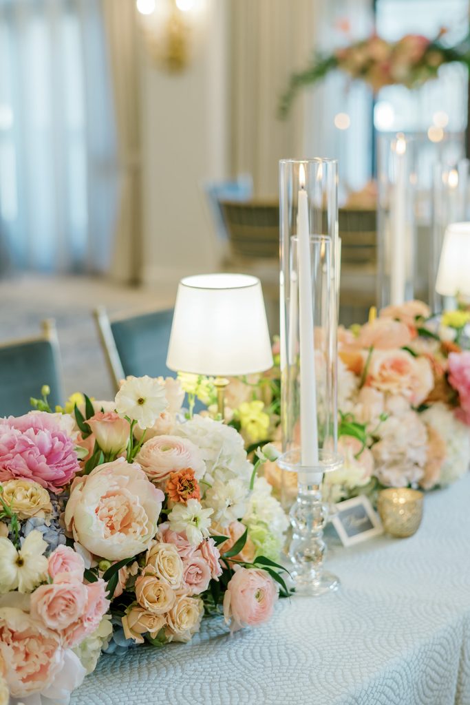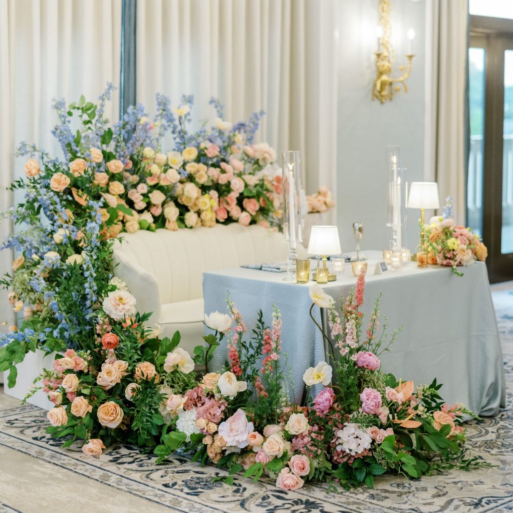 Romantic florals by Elsie’s Flower Shoppe framed the celebration, blending soft pastels with lush greenery to create a design that felt both elevated and personal. As owner Lori Christy shared, “When a bride trusts the process—and embraces color—the design tells a story all on its own.” The floral design did just that, setting the tone for a day that felt thoughtful, expressive, and entirely Mary and Max.