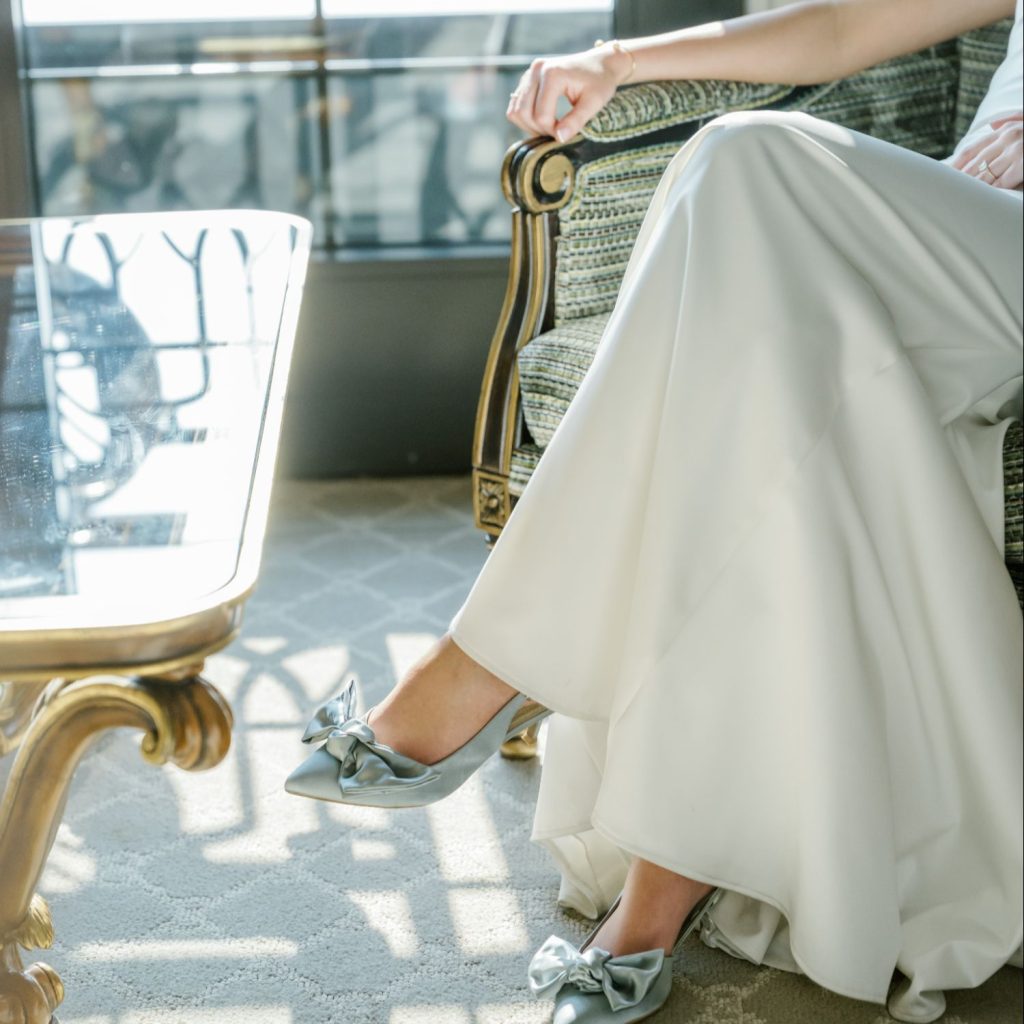 That same sense of individuality carried through to the bridal party, where bridesmaids selected their own dresses. Among them was a soft Whisper Blue moment in the Jenny Yoo Simona dress from Bella Bridesmaids Indianapolis—an easy, tiered silhouette that blended effortlessly into the day’s overall look.