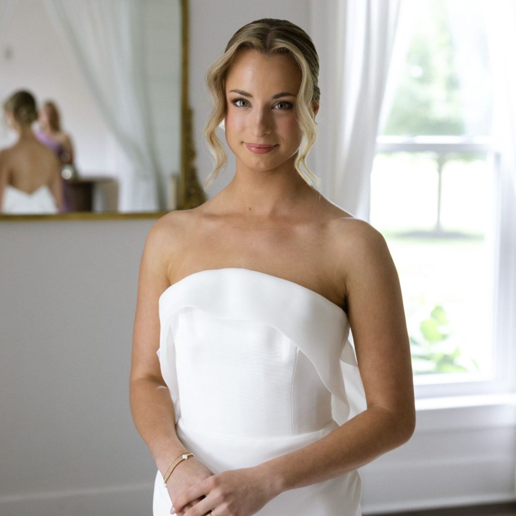 There’s something about Mustard Seed Gardens that feels like a private estate hidden away from the world. Madeline looked incredible in a strapless gown (that back bow detail? Chef’s kiss), while Keagan kept it cool in a light sand-colored suit. Whether they were tucked away in the window light of the farmhouse or stealing a quiet moment in the middle of the lawn, the space provided that perfect mix of secret garden meets elevated barn party.