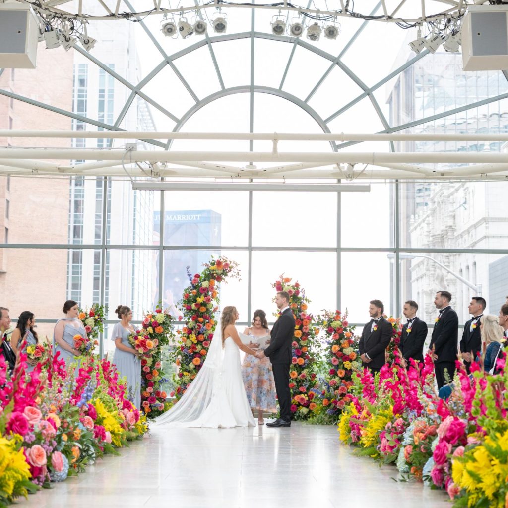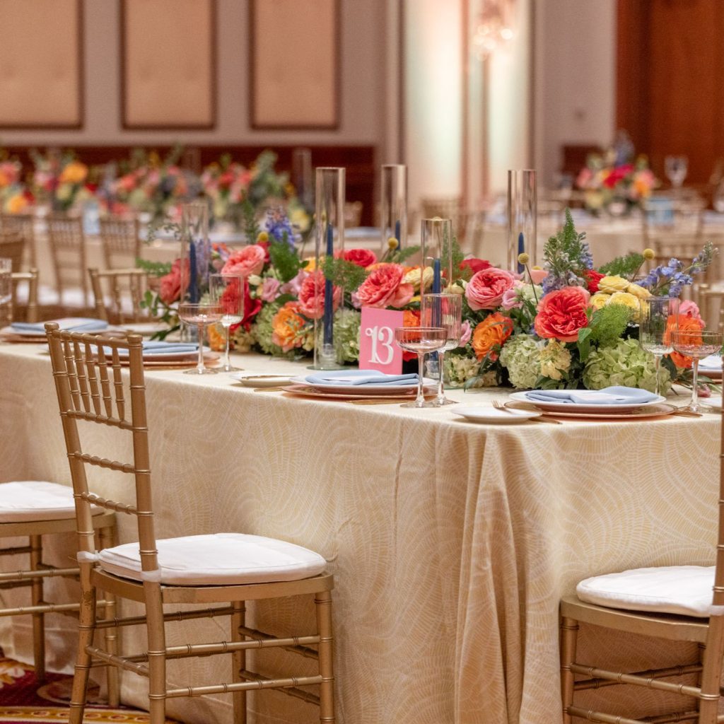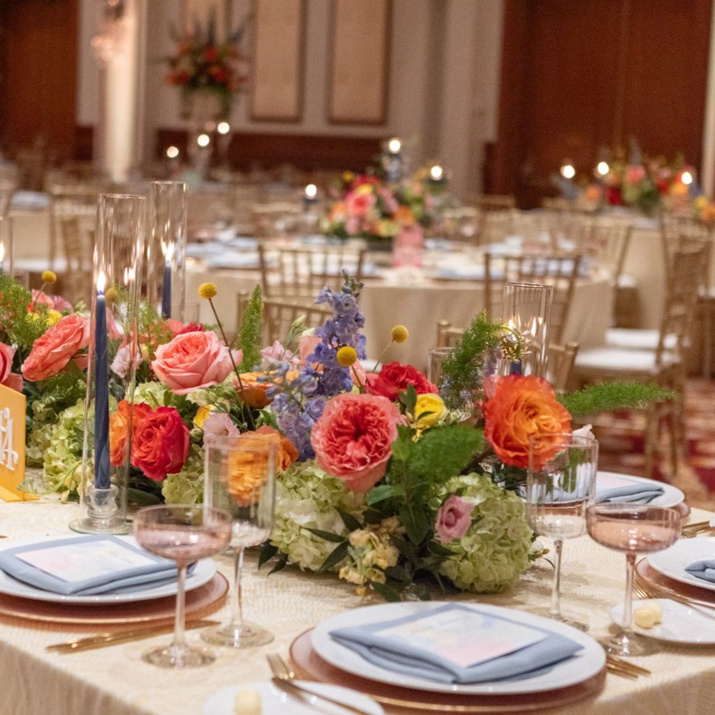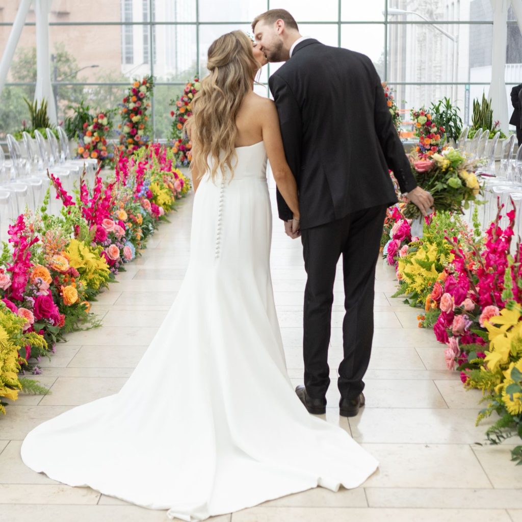 Abbie and Brett’s wedding was a total burst of color, style, and personality—the kind of day where every detail felt like a perfect match for their energy. Designed by Mon Amie Events, the celebration hit that sweet spot between formal elegance and cheer. The sorbet-colored atmosphere was brought to life through a curated mix of textures from LGi Linens and elevated with rentals from Violet Vintage Rentals, along with custom-built pieces by Ace Party Rentals that anchored the couple’s vibrant vision.