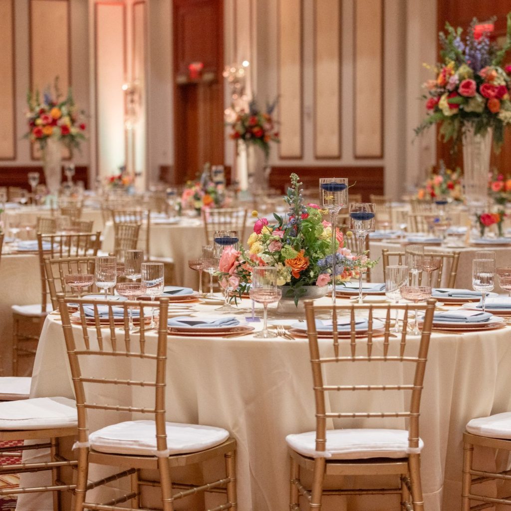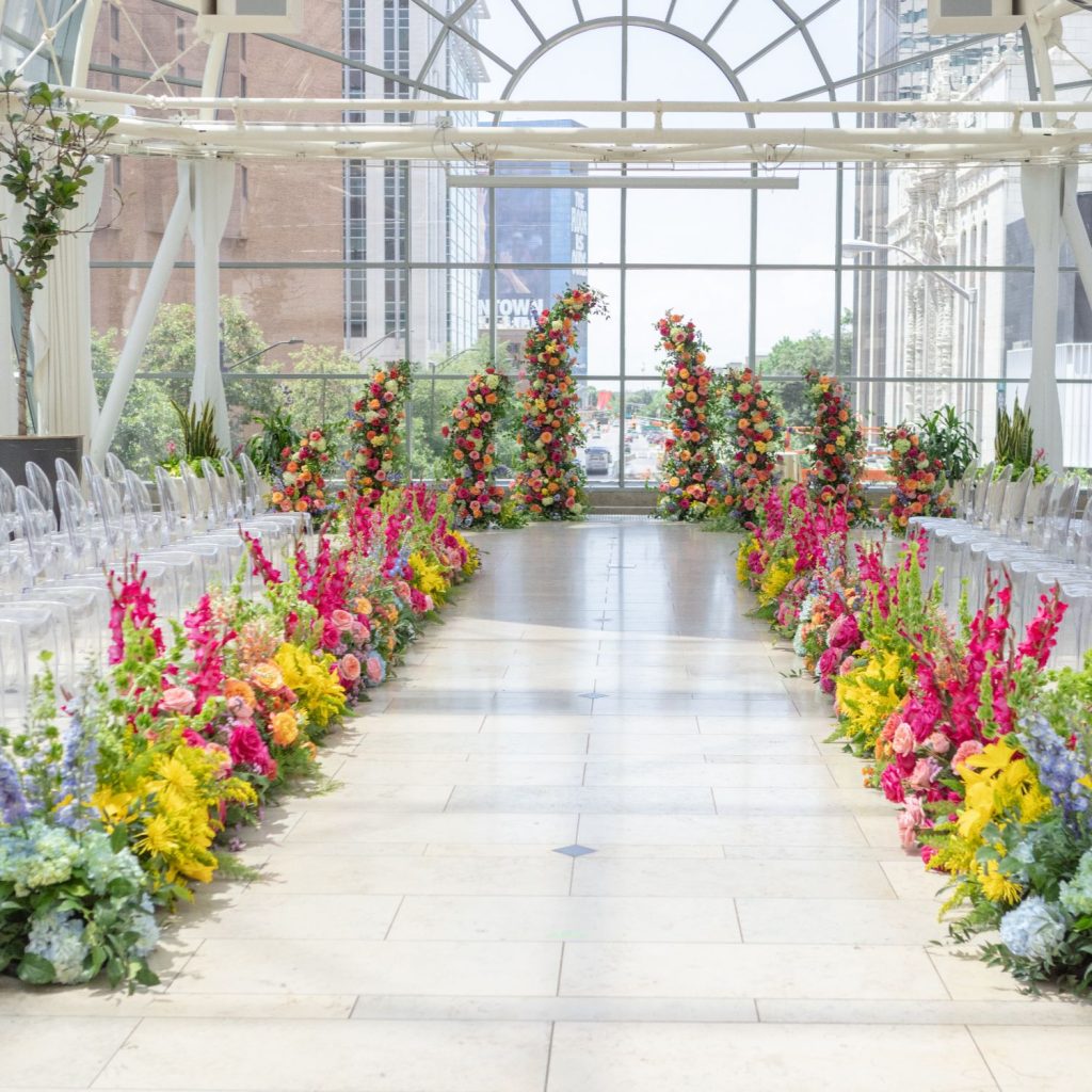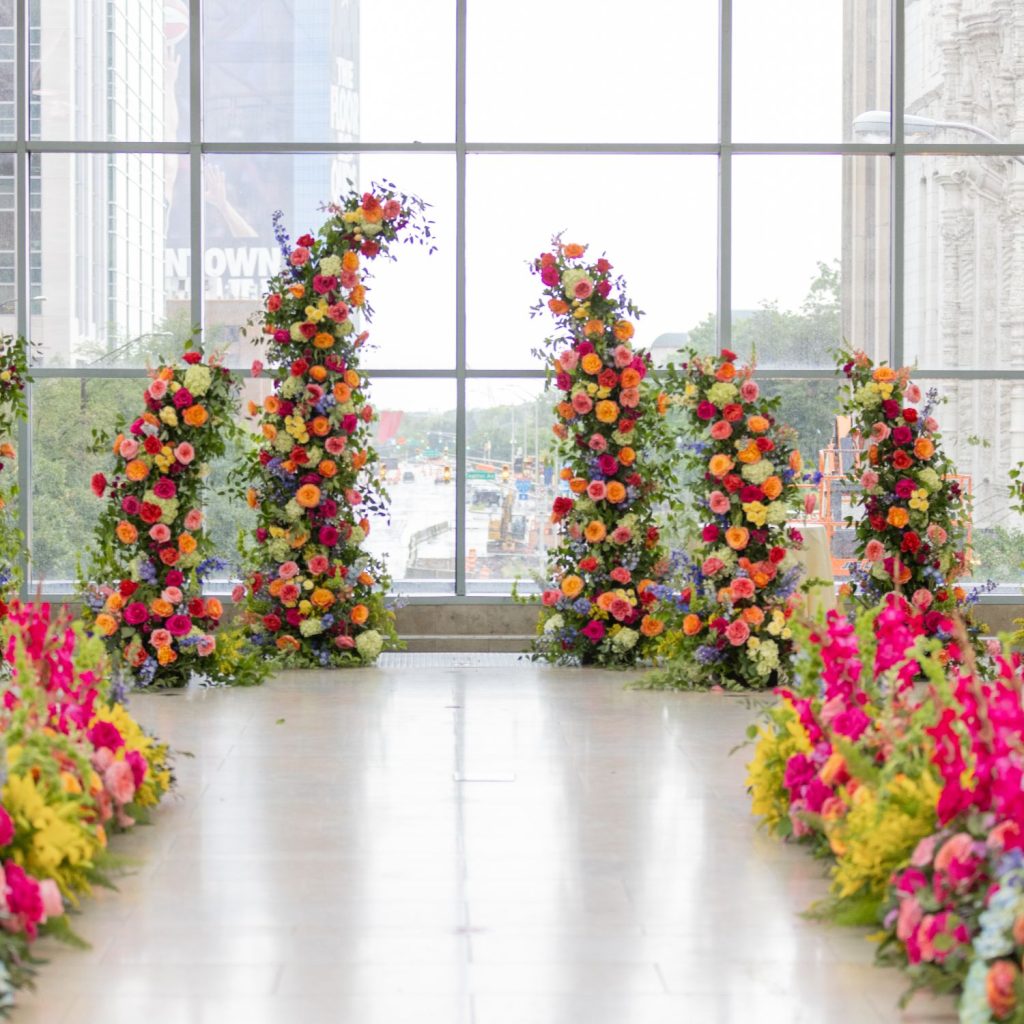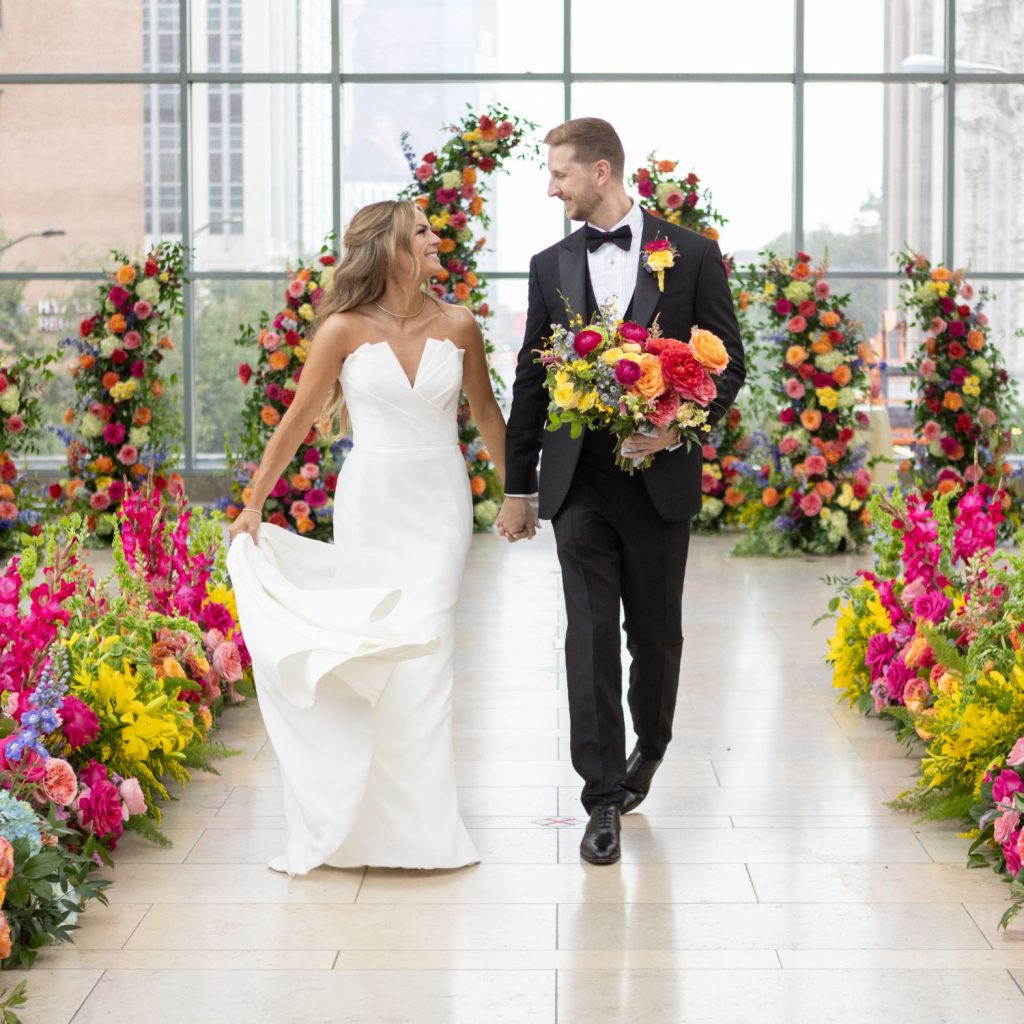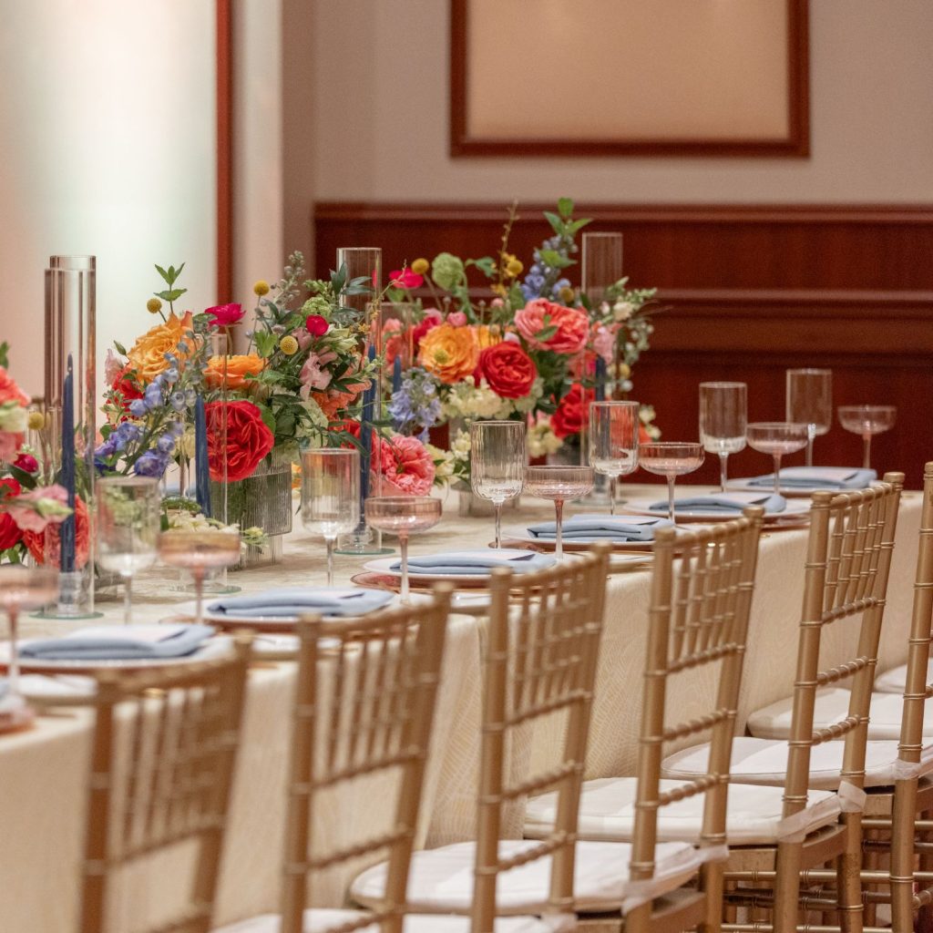 Abbie and Brett’s wedding was a total burst of color, style, and personality—the kind of day where every detail felt like a perfect match for their energy. Designed by Mon Amie Events, the celebration hit that sweet spot between formal elegance and cheer. The sorbet-colored atmosphere was brought to life through a curated mix of textures from LGi Linens and elevated with rentals from Violet Vintage Rentals, along with custom-built pieces by Ace Party Rentals that anchored the couple’s vibrant vision.