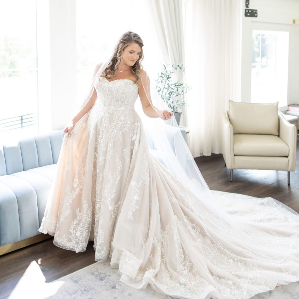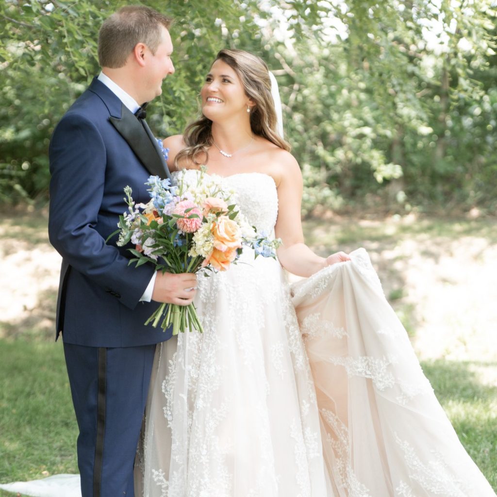 “Our favorite wedding day memories were those special moments shared between just the two of us,” they said. “The first was our first look. All day-of anxieties immediately dissipated the moment we locked eyes. We knew the rest of the day would be smooth sailing from that moment forward.”