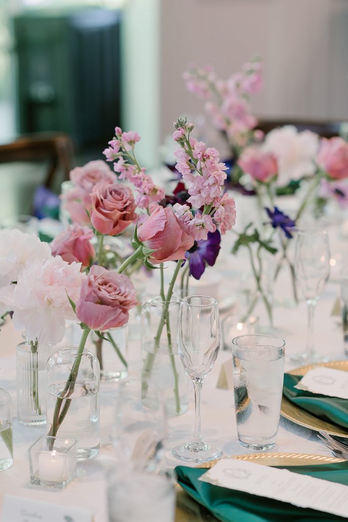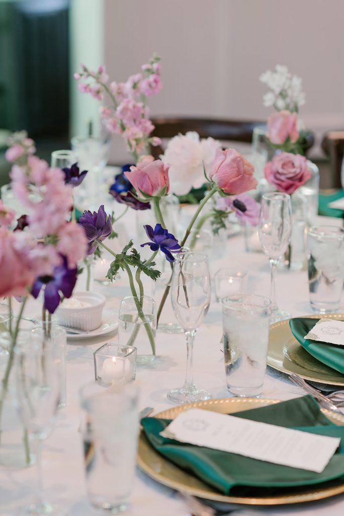 Vivian and Robert’s wedding was colorful, personal, and full of thoughtful touches that showed who they are as a couple. Their palette mixed emerald and violet with soft pinks and purples, creating a look that felt both classic and unexpected.