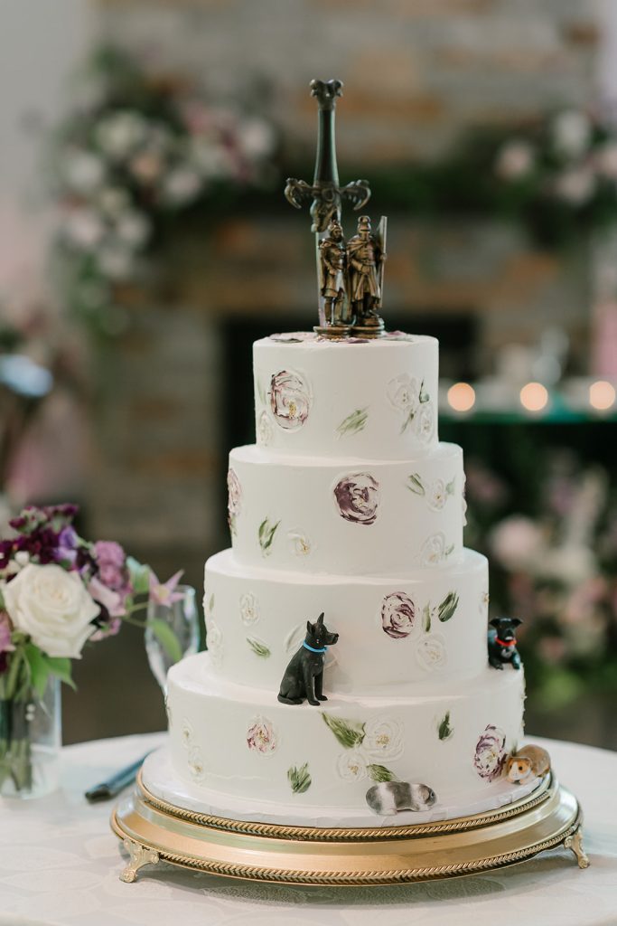 Their cake, decorated with painted florals and animal figures of their pets, added a playful touch to the elegant design—a sweet reflection of their life together.