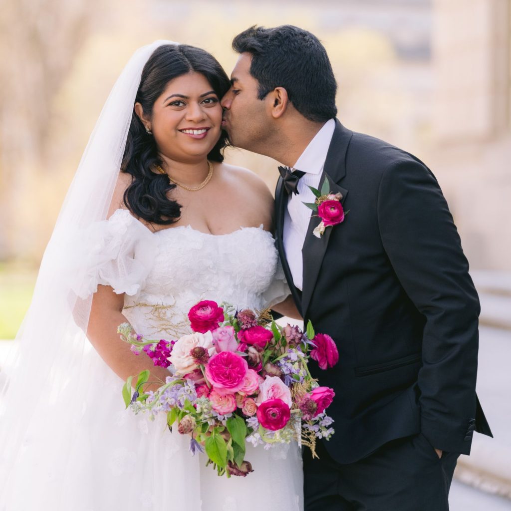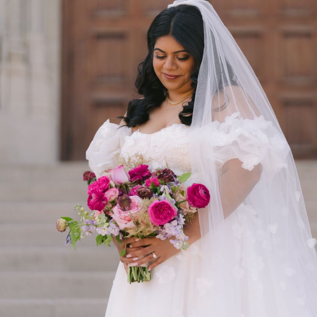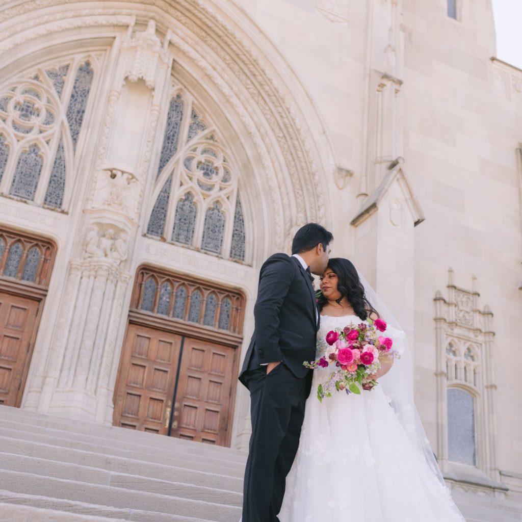 They were also intentional about weaving their heritages into the celebration. While they chose not to hold a traditional Catholic or Hindu ceremony, they incorporated meaningful touches from both—garland and ring exchanges, carefully chosen wedding outfits, scripture readings, and music at the reception—all of which made the day feel uniquely theirs.