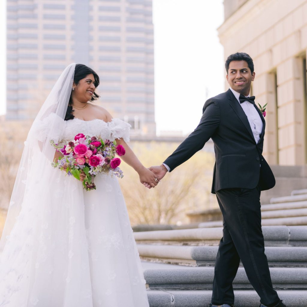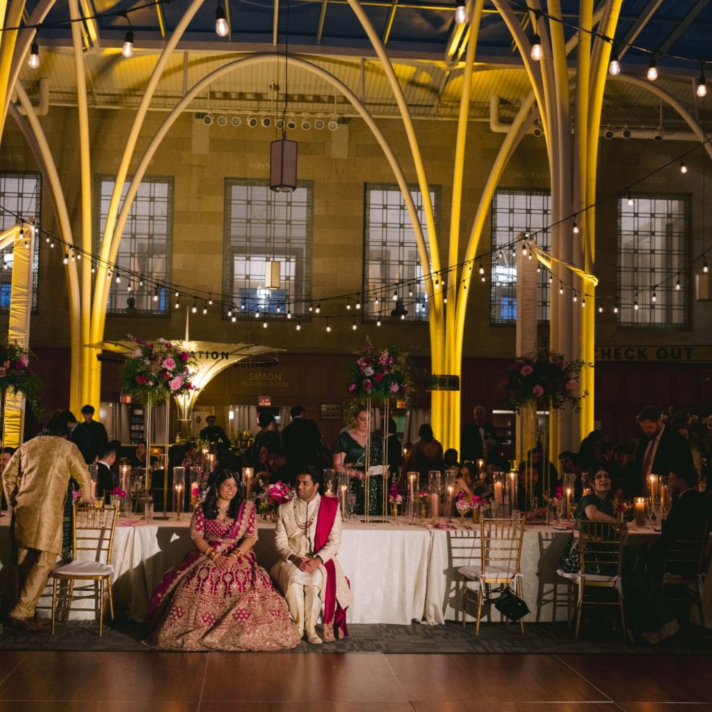 Anju and Harsha’s wedding brought together love, family, and culture on a beautiful spring day in downtown Indianapolis. Beneath soaring glass windows, sunlight streamed in and created the most magical scene as they exchanged vows surrounded by their closest family and friends.