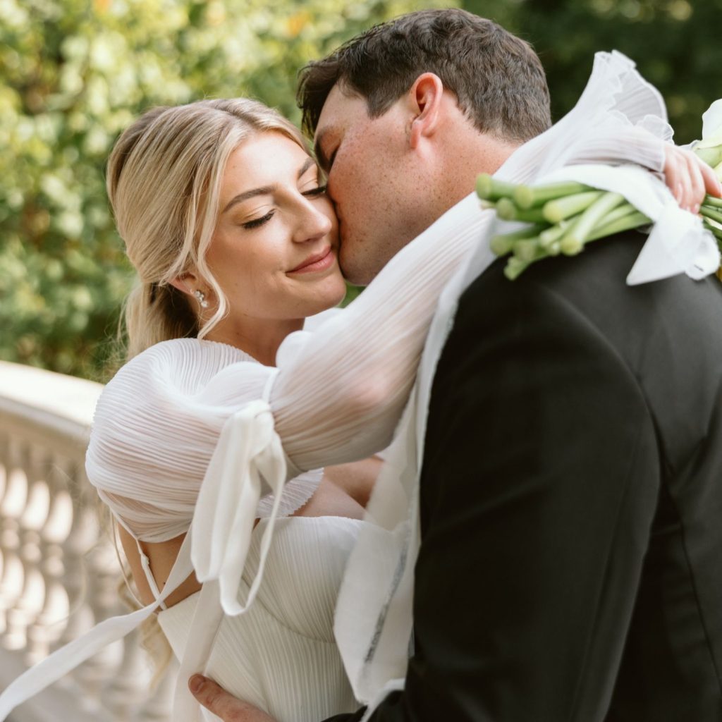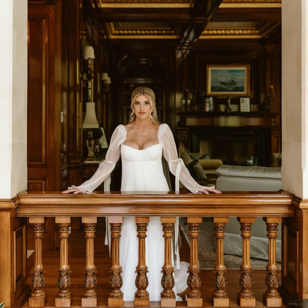 Set against Lucas Estate’s stunning gardens and grand estate, Claire and Luke’s wedding was a masterclass in classic elegance. The aesthetic was refined yet romantic: crisp white florals, greenery, and touches of gold that caught the late afternoon light. Claire’s gown—a modern take on timeless bridal style with delicate sheer sleeves—was everything she’d dreamed of. “Getting to show my dad, my girls, and Luke the dress of my dreams was such a special moment,” Claire shares.