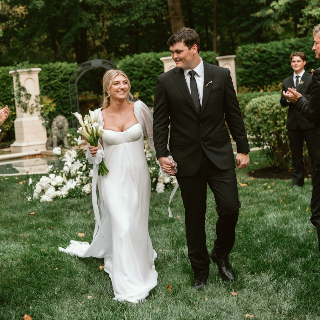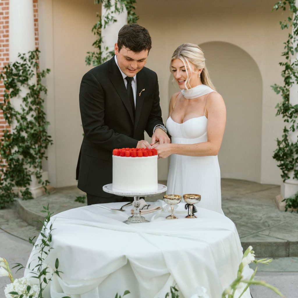 The reception brought another favorite moment—dinner at a grand king’s table where Claire and Luke sat surrounded by their entire bridal party. “Being able to sit with all of our best friends for dinner was so special,” Claire reflects. “It felt like we were all together celebrating, not separated at different tables.”