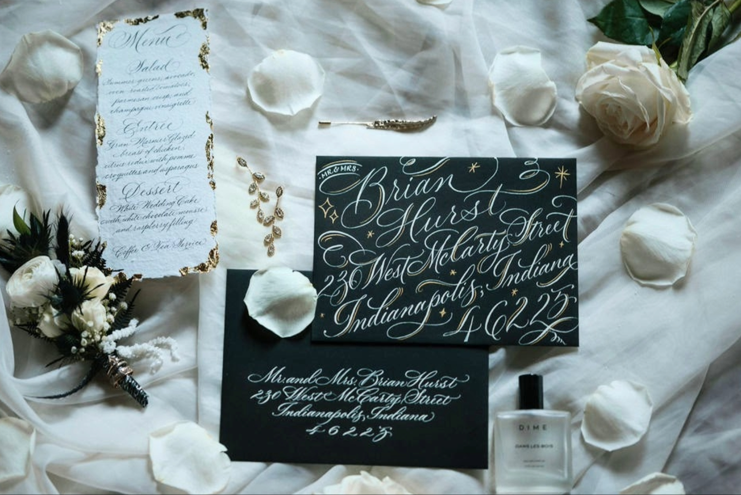 Calligraphy Jewels specializes in modern and traditional calligraphy, Live Event Services, engraving, painting, and woodburning to create timeless, personalized details for weddings and special events. Offering everything from envelope addressing, custom signage and seating charts to engraved gifts, hand-painted accents, and heirloom keepsakes, each piece is thoughtfully designed to celebrate every couple’s unique story.