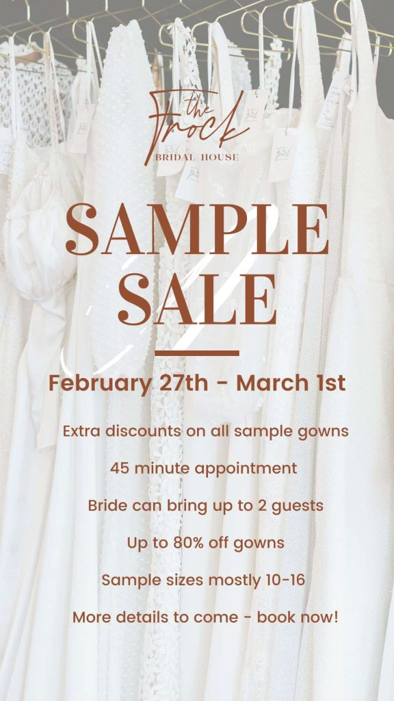 Up to 80% off sample gowns! 45 minute private appointment Bride + up to 2 guests Most sample gowns are bridal size 10-16 Book your appointment to find a great deal on your dream dress!...